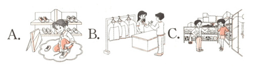 四、几个小朋友要去购物。请根据他们的需求选择他们要买的东西。