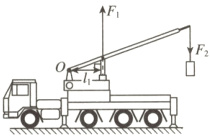 6. [2024·宜宾] 如图是宜宾港一起重机正在吊起货物的情景,请在图中画出此时动力F₁的力臂l₁和阻力F₂的示意图。