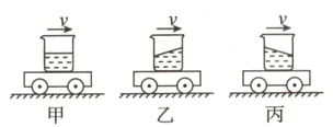 15. 如图甲所示,小明将盛有水的烧杯放在小车上,推着小车水平向右做匀速直线运动时,烧杯中的水面应是图________(填“甲”“乙”或“丙”)的形状;若此时小车突然刹车减速,烧杯中的水面应是图________(填“甲”“乙”或“丙”)的形状,做出上述判断的依据是________(填“水”或“烧杯”)具有惯性。