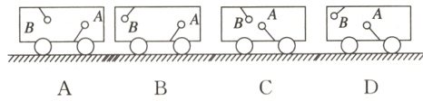 12. [2024·济宁任城区期中]如图所示,A是用绳拴在车厢底部上的氢气球(ρ氢气<ρ空气),B是用绳挂在车厢顶的金属球,开始时它们和车厢一起向右做匀速直线运动,若汽车突然做减速运动,则图中能够表示汽车做减速运动的情况是( )