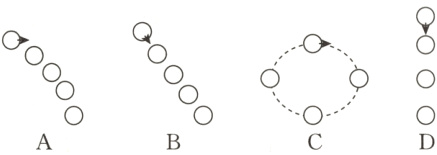 9. 用频闪灯拍摄小球的运动轨迹,每隔相等时间曝光一次,所得到的照片如图所示,其中小球受平衡力作用的是 ( )