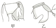 方法一:如图甲所示,将一块毛巾包在玻璃罐的盖子上面,再用手拧盖子,玻璃罐就打开了。
