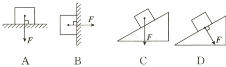 D 点拨:由于物体放在水平面上时,压力通常等于重力,导致学生错误地认为压力一定与重力有关。压力是垂直作用在物体表面上的力,所以它的方向总是垂直于物体的表面,重力的施力物体是地球;只有物体放在水平面上,物体对水平面的压力才等于重力。