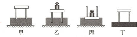3. 如图是“探究影响压力作用效果的因素”实验。如图甲所示,将小桌放在海绵上;如图乙所示,在小桌上放一个砝码;如图丙所示,把小桌翻过来,桌面朝下,并在它上面放一个砝码;如图丁所示,将小桌放在木板上。