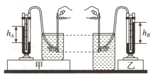 6. [2024·随州曾都区三模,多选]在探究液体内部压强与哪些因素有关的实验中,甲、乙两组同学正确实验的现象如图所示,U形管两侧液面的高度差hA<hB,甲、乙两组烧杯中的液体密度分别为ρ1、ρ2,橡皮膜处的压强分别为p1、p2。下列说法正确的是( )