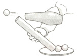 解:用电吹风对着玻璃管上端管口吹风,发现乒乓球会被吸入玻璃管中并从上端管口飞出,原因是玻璃管上端管口空气流速比下端管口空气流速大,上端管口的压强比下端管口压强小,所以乒乓球在斜向上的压强差的作用下被吸入玻璃管中并从上端管口飞出。