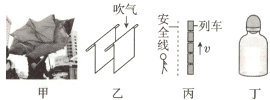B. 图乙,向两张纸之间吹气,两张纸会相互“吸”起来