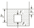 2. [2024·唐山路北区期中]如图所示,有一棱长为10 cm的正方体直立浸没在水中,正方体的各个侧面受到水的压力相互抵消,上、下表面所受到水的压力分别为$F_{1}$和$F_{2}$。已知正方体上表面在水中的深度$h_{1}=12\text{ cm}$。($g$取10 N/kg)求: