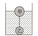 6. [2024·宜宾,多选] 如图所示,两个不吸水的实心小球甲和乙,用不可伸长的细线系住,放入水中静止后,甲有一半的体积露出水面,乙与容器底部接触,细线被拉直。已知甲的重力为4 N,甲受到的浮力为8 N,甲、乙的体积之比为2:1,甲、乙的密度之比为1:6,水的密度为1.0×10³ kg/m³,g取10 N/kg。下列说法正确的是( )