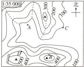 B 点拨:由等高线图标出的海拔高度可知,B点的海拔最高,同一物体质量一定,它的位置越高,重力势能越大,故同一物体放在B点重力势能最大。