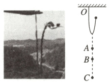 14. [2024·成都锦江区期末]某运动员做蹦极运动,如图所示,从高处O点开始下落,在A点时弹性绳处于自由长度,在B点时运动员所受弹力恰好等于重力,C点是第一次下落到达的最低点(蹦极过程视为在竖直方向的运动)。下列判断正确的是( )