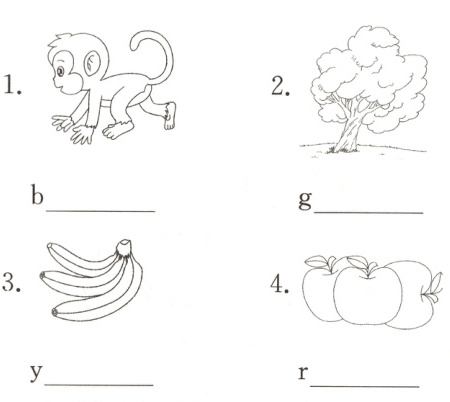 一、看图,根据首字母提示写出下列事物的常见颜色。