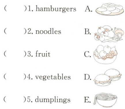 Binbin:4. ________ I want fish, vegetables and hamburgers. I want dumplings, too. But I don't want soup. I want orange juice.