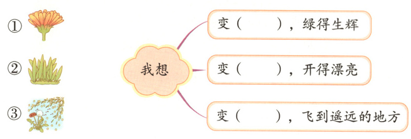【点拨】本题考查观察图片和获取信息的能力。诗歌第二、三句写的是“我”想变为什么事物,即“我”的愿望。认真阅读这两句诗歌可选出正确答案。