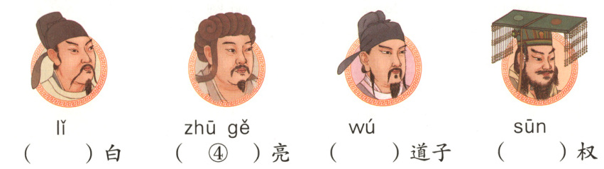 1. 人物馆张贴着许多名人画像,照样子,选出他们的姓氏。