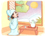 [点拨]本题考查观察图片的能力和对诗句的理解能力。图中的人物正抬头望向窗外夜空中的一轮明月,因此与图片相对应的诗句是“举头望明月”。