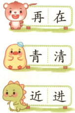 2.【偏旁识字】选择偏旁补全田字格中的字,并完成练习。