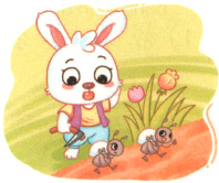 ①小白兔加快步子往家跑。 ②蚂蚁搬东西。
