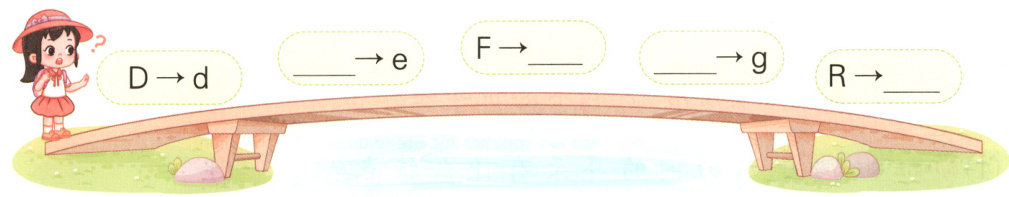 2. 一条小河挡在面前,照样子填写缺失的字母,搭起一座小桥吧。