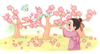 4. 图书馆里正在举行赛诗会,一起参加吧。(补全下面的古诗,并用“____”画出与右图对应的诗句)