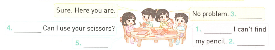 A. I can't find my scissors(剪刀)! B. Can I use your pencil?