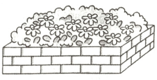 5. 有一个长方体花坛(如图),四周用砖砌成,厚度是1 dm,再在外面贴一层瓷砖(厚度忽略不计),从外面量得长是2.8 m,宽是1.5 m,高是0.6 m,中间要填1.69 $\text{m}^3$的泥土用来栽花。泥土深多少分米? 贴瓷砖的面积是多少平方分米? (6分)