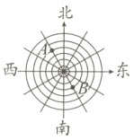 (1)以搜救船为观测点,遇险船A的位置是( )偏( )