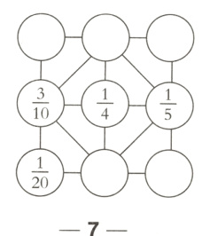 $\frac{3}{4}$ $\frac{7}{8}$ $\frac{3}{10}$ 1 $\frac{1}{2}$ $\frac{1}{6}$ $\frac{4}{5}$ $\frac{4}{9}$ 1 $\frac{1}{6}$ $\frac{4}{13}$ $\frac{4}{15}$