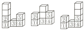 2.答:有2种放法。理由:要使从左面和前面看到的图形都不变,可以放在小正方体①、②的后面和小正方体④、⑤的前面。叠放后如图所示。