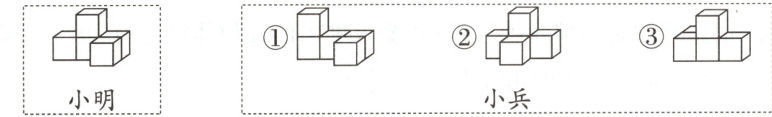 (1)从左面看,小兵搭的积木中( )号和( )号的图形与小明搭的是相同的。