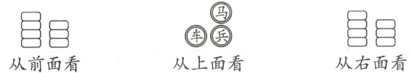 4. (创新情境题)中国象棋源远流长,是中华民族的文化瑰宝。聪聪从小喜欢下象棋,他在桌面上用象棋摆了一个形状。下面是他从三个方向所看到的图形,聪聪摆这个形状最少要用( )枚象棋,最多要用( )枚象棋。