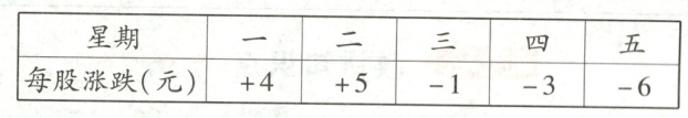 (1)20 + 4 + 5 - 1 = 28(元) 答:本周三收盘时,小李所持股票每股28元。