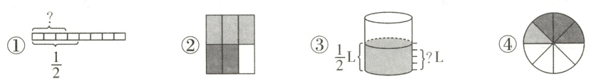 1. 下图中,能够正确表示$\frac{1}{2}\times\frac{3}{4}$的意义的有( )。