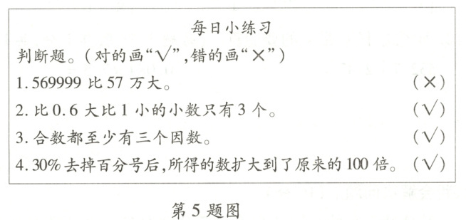 5. 林楠在一次“每日小练习”中,提交的结果如上图,她一共做对了( )道题。