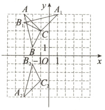(2)在图中画出△ABC绕点O逆时针旋转90°后对应的△A₂B₂C₂。