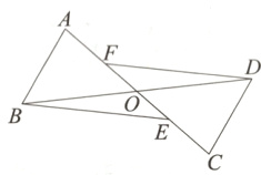 $\begin{cases}FO = EO,\\\angle FOD = \angle EOB,\\DO = BO,\end{cases}$