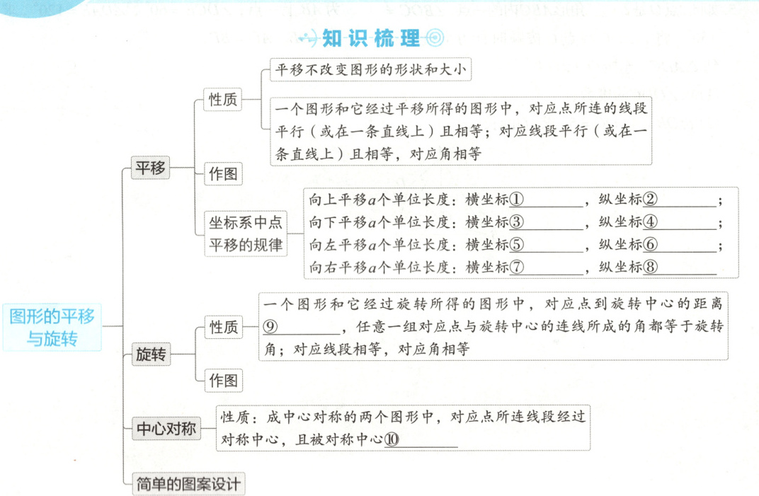 ①不变 ②加a ③不变 ④减a ⑤减a ⑥不变 ⑦加a ⑧不变 ⑨相等 ⑩平分