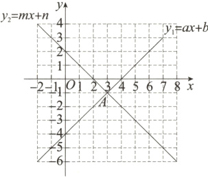5.如图,一次函数y=ax+b和y2=mx+n的图象相交于点A(3,−1),则不等式ax+b≤mx+n的解集为 ( )