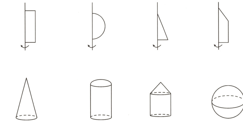 一、把下列各图与旋转后得到的立体图形连起来。(8分)