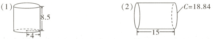 (1)$3.14×4×2×8.5 + 3.14×4^{2}×2 = 314(cm^{2})$