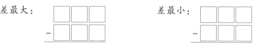 例2从8、1、3、5中选择不同的数字卡片组成三位数,从中选出2个三位数组成一道减法算式,要求差最大。
