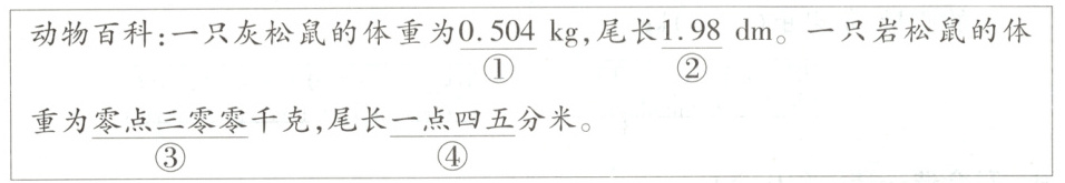 三、(教材P36练5变式)我会读出或写出下面的小数。(4分)