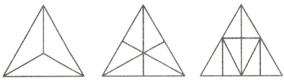 2. 聪聪想为家里设计一个等边三角形的装饰,需要把等边三角形分成完全相同的3个三角形、6个三角形和8个三角形,请你帮他画一画。(9分)
