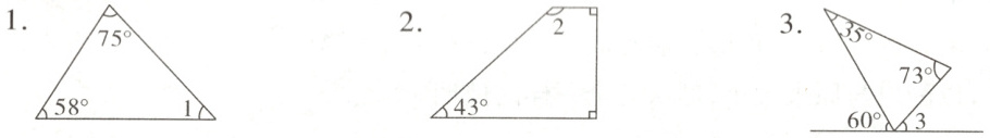 1. ∠1 = 180° - 75° - 58° = 47°