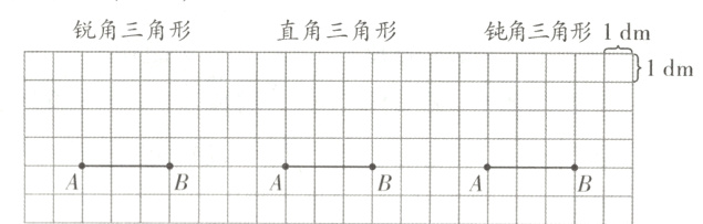 1. 王老师想让橙橙画出底是3 dm、高是2 dm的三角形,并且给出了底边AB。