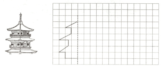1.楼阁在园林建筑中占有比较重要的地位,一般采用均衡对称的方式建造,下图是一个楼阁的部分图形,请按照要求画一画。(8分)