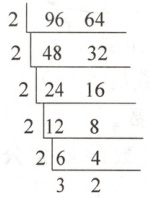 96的因数有1,2,3,4,6,8,12,16,24,32,48,96;64的因数有1,2,4,8,16,32,64。
