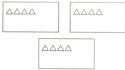 已知下列各长方形中4个△各占总数的$\frac{1}{3}$、$\frac{2}{3}$、$\frac{4}{7}$,请把每个长方形中的△补充完整。