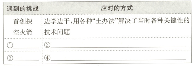 2.①研制卫星运载火箭 ②将导弹技术与探空火箭技术相结合③研制返回式卫星 ④立足实际,制定了采用弹道式返回方式,由返回舱和仪器舱组成大返回舱的方案