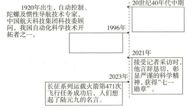 11.陆元九远渡重洋留学,学成归国后为我国惯性技术等方面的发展作出卓越贡献。 火箭发射失败后,他苦苦钻研,终于找到了问题的关键。